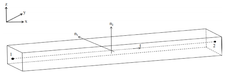 如圖 2所示,精確設(shè)計(jì)梁的擺放位置需要確定梁截面的三個(gè)方向, 其中n1、n2代表梁的橫截面位置, t代表梁的軸線方向。