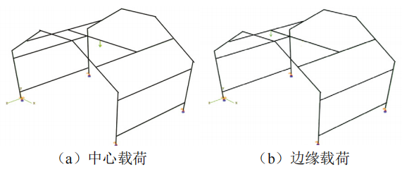龍門架工作載荷主要為手拉葫蘆拉升重物。將該載荷簡(jiǎn)化為集中載荷,手拉葫蘆移動(dòng)工況,集中載荷位置主要在橫梁邊緣和橫梁中心變化。