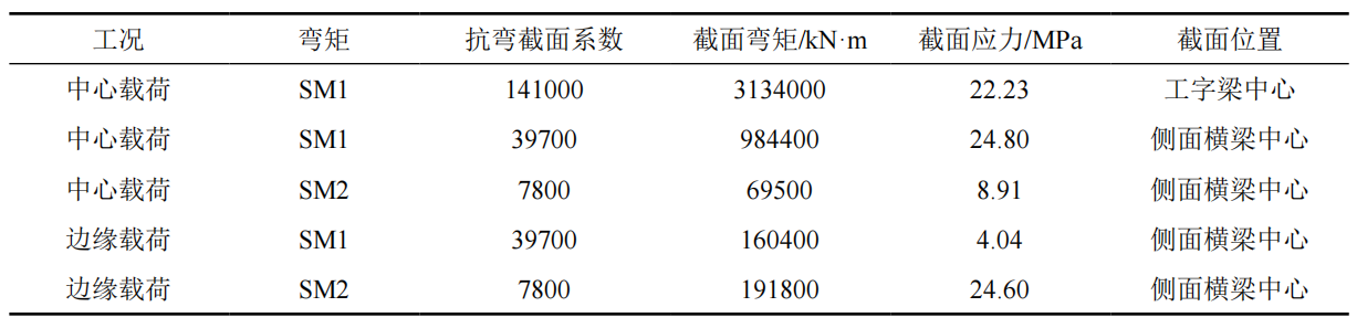 表 3 單位載荷龍門架截面應(yīng)力及其分布