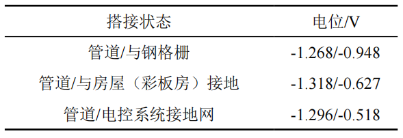 表 3 管道端與關(guān)聯(lián)物搭接部位電位對比