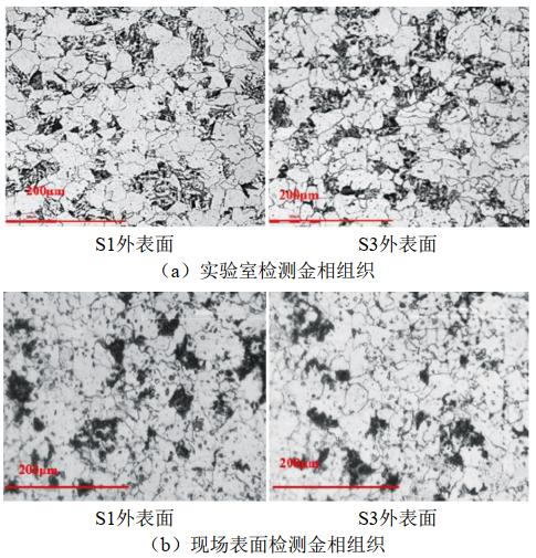 圖 1 實驗室和現(xiàn)場表面檢測金相組織