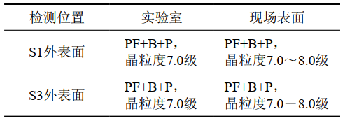 表 1 實驗室和現(xiàn)場表面金相檢測結(jié)果對比