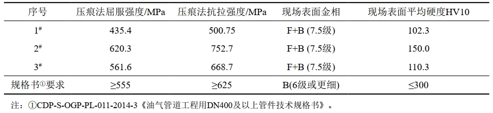 (1)針對高鋼級低強度三通在線檢測和排查難題,提出了采用表面金相、表面硬度和壓痕法組合排查方案。以表面金相鐵素體為主且表面硬度低于170 HV10初步判定,以壓痕法檢測結(jié)果最終判定在役三通是否為低強度異常三通。