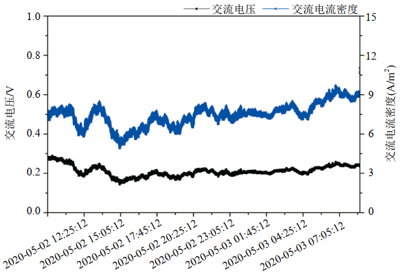 圖 1 某原油管道交流電壓/交流電流密度圖