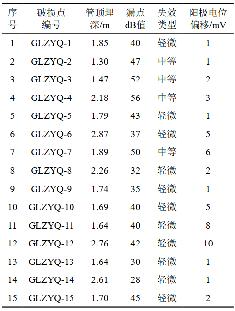 表 1 防腐層破損點(diǎn)對(duì)應(yīng)陽(yáng)極場(chǎng)電位正向偏移統(tǒng)計(jì)表