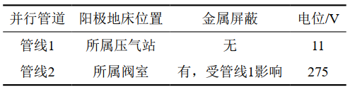 表 2 并行管道陽(yáng)極場(chǎng)金屬屏蔽影響對(duì)比