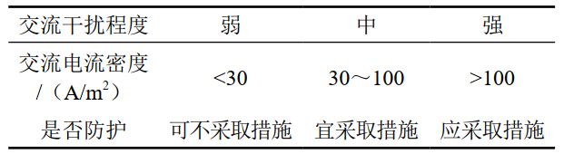 當(dāng)干擾程度評價為“中”或“強(qiáng)”時,應(yīng)采取排流防護(hù)措施或提出消除交流干擾建議。