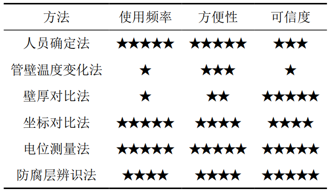 上述六種方法可以因地制宜使用。當(dāng)一種方法無法確認(rèn)時,可通過不同方法進行復(fù)核驗證。六種方法在實際應(yīng)用中的效果如表 1所示。