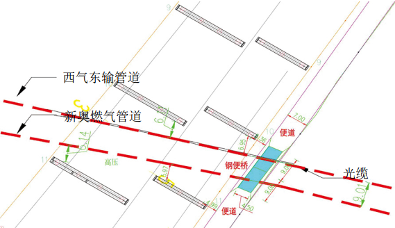 圖 3 高速公路特大橋與天然氣管道交叉平面圖