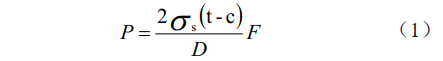 (2)集團(tuán)公司推薦壓力計(jì)算方法!秶夜芫W(wǎng)集團(tuán)動(dòng)火作業(yè)管理暫行細(xì)則》《在役管道環(huán)焊縫質(zhì)量風(fēng)險(xiǎn)排查治理工作指南》關(guān)于壓力計(jì)算執(zhí)行公式(1)計(jì)算方法,但參數(shù)c和F的取值不同,其中c取3.5 mm,F(xiàn)取0.5或0.6(原油、成品油管道取 0.6;天然氣、煤氣管道取0.5)。