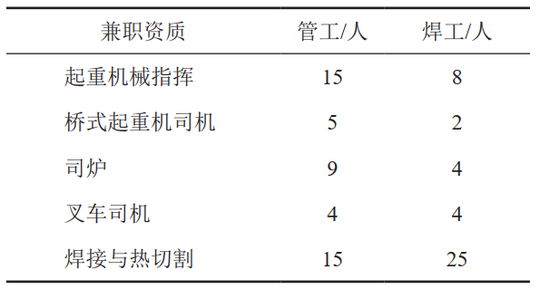 表 1 維搶修隊伍管工、焊工兼職情況統(tǒng)計表