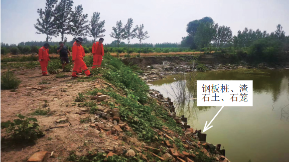 由于近些年地方政府出臺(tái)生態(tài)環(huán)境補(bǔ)水政策和汛期降雨量增大,使地下水位不斷上漲,管道周邊取土坑積水增加,水位也逐年上升。取土坑邊緣土方長(zhǎng)期遭受浸水侵蝕,不斷向管道方向坍塌、侵蝕,且發(fā)展速度驚人,管道存在露管、懸空等地質(zhì)災(zāi)害隱患。