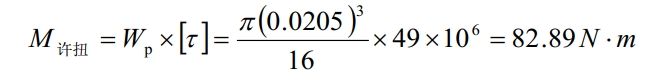 用加力杠嘗試轉(zhuǎn)動(dòng)絲杠,防止用力過(guò)大使絲杠出現(xiàn)斷裂,高壓力油氣從絲杠斷裂處溢出。對(duì)錫青銅材料的絲杠Tr24X3進(jìn)行扭矩計(jì)算(最小徑Φ20.5 mm),現(xiàn)場(chǎng)加力矩不大于許用力矩: