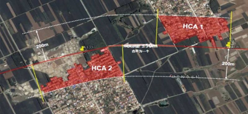 要根據(jù)沖溝兩側的坡度大小、輸送介質的流動性,測算發(fā)生泄漏油品流入河流或者敏感區(qū)的時間,再結合泄漏監(jiān)測報警時間到應急搶險隊伍到達現(xiàn)場處置的時間,若在油品泄漏至河流或敏感區(qū)域之前能夠及時得到處置,不產生較大后果的,該處不判定為高后果區(qū),否則作為高后果區(qū)管理。