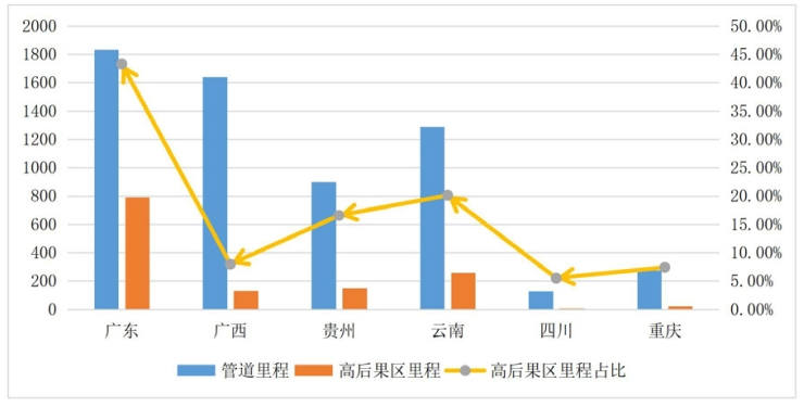 圖 1 華南公司2023年各省市高后果區(qū)里程及占比