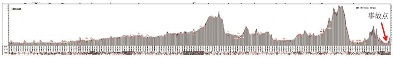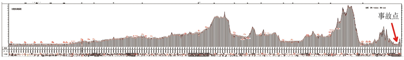 原因之三:壓力高、管壁薄。東黃復(fù)線于1986年7月建成投運(yùn),1991年9月通過(guò)竣工驗(yàn)收[1,2]。該管道是我國(guó)首條采用大站距、變壁厚、密閉輸送工藝設(shè)計(jì)的原油管道[3]。管道原設(shè)計(jì)輸油方向是從東營(yíng)到黃島,設(shè)東營(yíng)首站、壽光熱泵站、丈嶺熱泵站、黃島末站,管道采用日本進(jìn)口的API5LX-60鋼管,管徑Ф711.2 mm,壁厚分別為8.74 mm、7.92 mm和7.14 mm三個(gè)級(jí)別,根據(jù)管道沿線壓力分布選擇管道壁厚,結(jié)果是出站端壁厚大、進(jìn)站端壁厚小,7.14 mm壁厚管道占總管長(zhǎng)的54.4%。1998年10月,管道改為從黃島向東營(yíng)方向輸送進(jìn)口原油,黃島油庫(kù)變?yōu)槭渍、東營(yíng)首站變成末站,停用了加熱爐[4],中間站變?yōu)椴剌斢驼、壽光輸油站。從管道縱斷面圖上(圖 4)可見(jiàn)事故點(diǎn)處海拔高度最低,緊鄰首站出站端,該處管內(nèi)的壓力最高,而此處原設(shè)計(jì)是末站進(jìn)站端,管道壁厚最薄。由于壁厚的原因,管道反向輸送改造后,泵站最高出站壓力由原來(lái)的6.57 MPa降到4.67 MPa,輸油量由2000萬(wàn)噸/年下降到1000萬(wàn)噸/年。然而反輸改造后事故點(diǎn)處管內(nèi)壓力較改造前增加了幾倍。