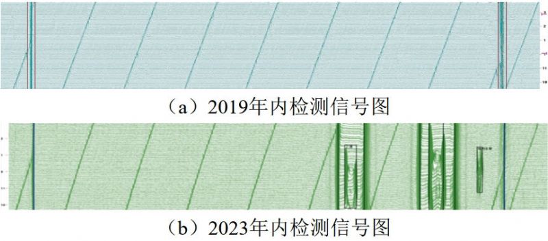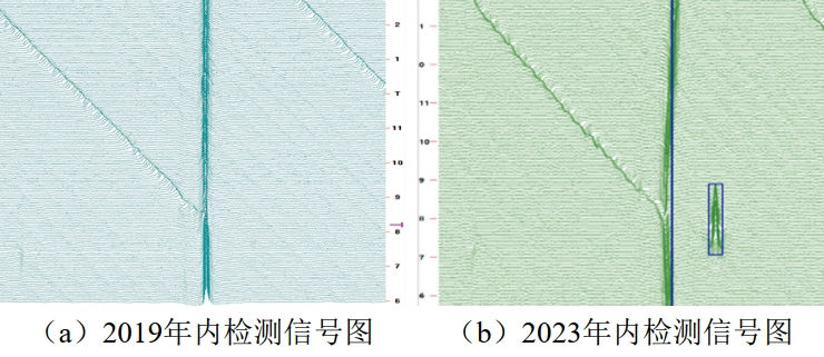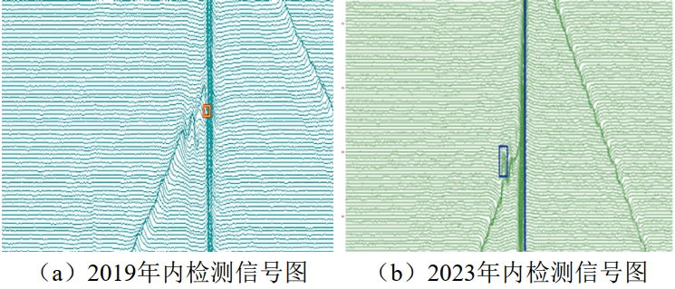 (2)單純通過內(nèi)檢測(cè)數(shù)據(jù)列表進(jìn)行對(duì)齊可能造成部分缺陷無法匹配?梢酝ㄟ^對(duì)重點(diǎn)特征內(nèi)檢測(cè)原始信號(hào)圖進(jìn)行人工匹配,作進(jìn)一步分析。