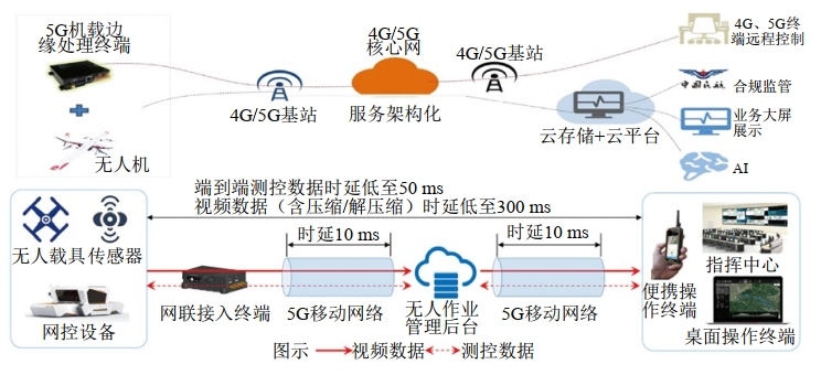 圖 1 5G無(wú)人機(jī)巡檢架構(gòu)設(shè)計(jì)和數(shù)據(jù)傳輸示意圖