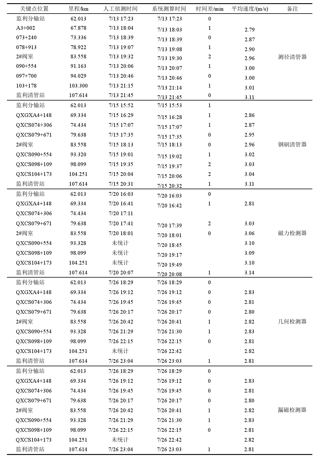 (3)可以精準計劃內檢測過程中檢測器位置上下游的作業(yè)流程,對于管輸過程的閥門開閉及啟輸作業(yè)有指導意義,有效提高工作效率。