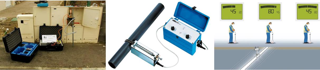 非金屬管線定位儀多采用主動特殊頻率信號和超窄帶濾波技術(shù),發(fā)射源與接收通道可一一對應(yīng),不會受到其他聲波及管道信號影響,抗干擾能力強(qiáng),適用于任何環(huán)境下的管道探測。一般將音頻驅(qū)動器與燃?xì)夤艿栏綄俳涌冢ǚ派⒖凇⒎ㄌm、調(diào)壓設(shè)備等)使用快速接頭連接,或通過鏈條與管道本體緊密捆綁在一起,產(chǎn)生的聲脈沖沿管道傳遞,通過拾音器接收的信號強(qiáng)弱來定位,也可探測主管道和支線管道的互通信號。探測時無需開挖、停氣,連接快速、定位準(zhǔn)確。但該設(shè)備無法定深,探測距離受管徑、壓力、埋深、回填土密度等影響較大,如硬質(zhì)路面下的管道較易探測,泥土地、綠化地下的管道由于土壤傳播聲波較差則不易探測,復(fù)雜地形環(huán)境下難以分辨確認(rèn)目標(biāo)管道。