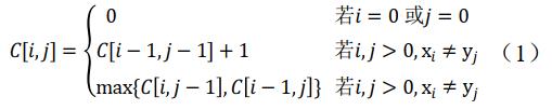 (1)基于LCS算法,查找兩組內(nèi)檢測數(shù)據(jù)中對齊的兩個(gè)一級管段的序列中最長公共子序列,將兩組內(nèi)檢測數(shù)據(jù)按照檢測時(shí)間分別定義為基準(zhǔn)數(shù)據(jù)和對齊數(shù)據(jù),最長公共子序列存在于基準(zhǔn)數(shù)據(jù)中的序列(x0,x1,x2....xi)和對齊數(shù)據(jù)中的序列(y0,y1,y2....yj)中,最長公共子序列的長度C[i,j]為: