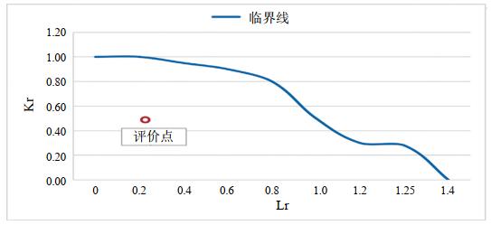 1#環(huán)焊縫缺陷評價結(jié)果如圖 6所示,其載荷比Lr為0.202, 韌性比Kr為0.541。由此可知,在未考慮其他外部附加載荷的情況下,該環(huán)焊縫可接受,但其為根部危害性缺陷,且焊口整體質(zhì)量差,建議采取有效的監(jiān)控措施。