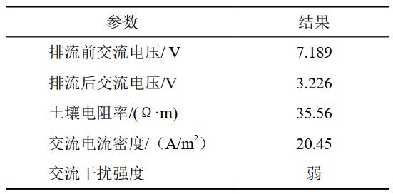 表 2 特高壓交流輸電線路交叉管段排流防護效果