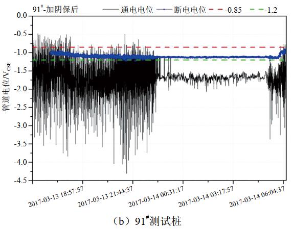 圖 4 治理后71#和91#測(cè)試樁通/斷電位波動(dòng)圖