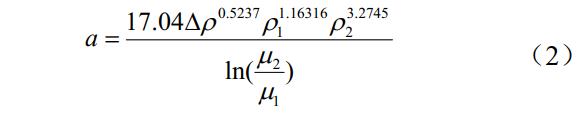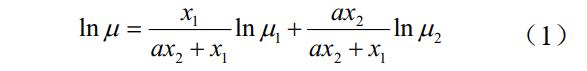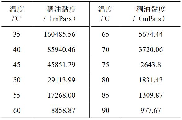 式中,χ1 ,χ2 分別為燃料油、稠油的體積分?jǐn)?shù),無量綱;μ,μ1 ,μ2 分別為混合油品、燃料油和稠油的黏度,mPa·s;ρ1、ρ2 分別為燃料油、稠油的密度,g/cm3。
