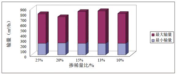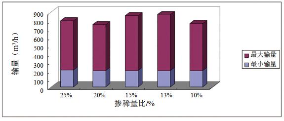 (5)從經(jīng)濟(jì)和管輸稠油難易程度綜合考慮,在大輸量下混油摻稀量15%比較合適。