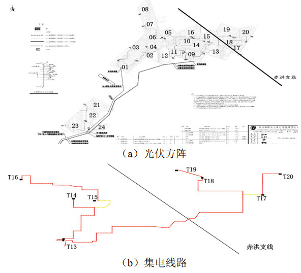圖 1 光伏電站方陣和集電線路與管道位置示意圖