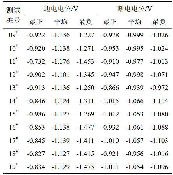 表 1 通電電位和斷電電位檢測數(shù)據(jù)