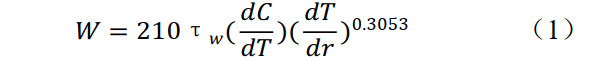 蠟沉積模型選用黃啟玉動(dòng)力學(xué)模型,該模型具有簡(jiǎn)單實(shí)用,精度合理的特點(diǎn),用于計(jì)算我國(guó)含蠟原油管道蠟沉積速率的實(shí)用性較高[4]。模型計(jì)算式為: