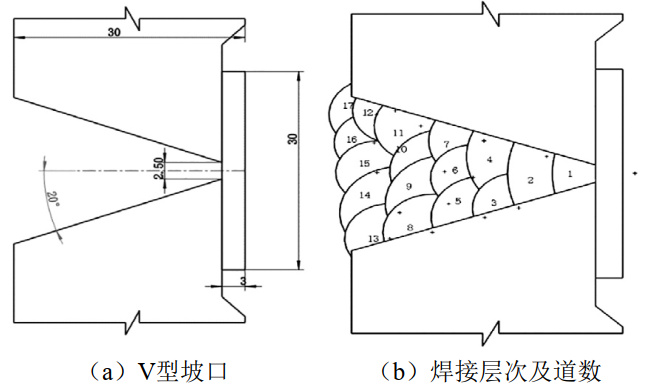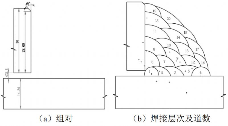 (3)墊層及回火焊道。按圖圖 3(b)標(biāo)注1至4焊道焊接墊層,3道和4道之間焊接回火焊道,如圖 3(b)所示第5焊道。