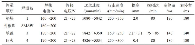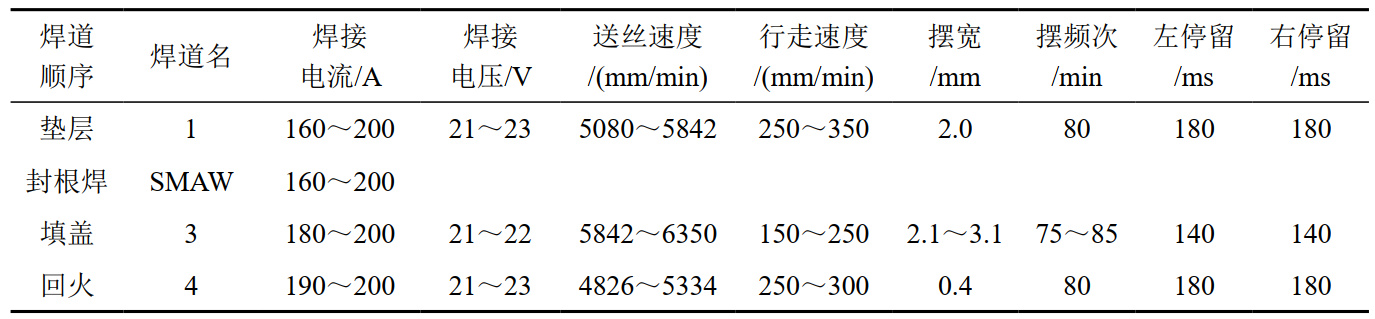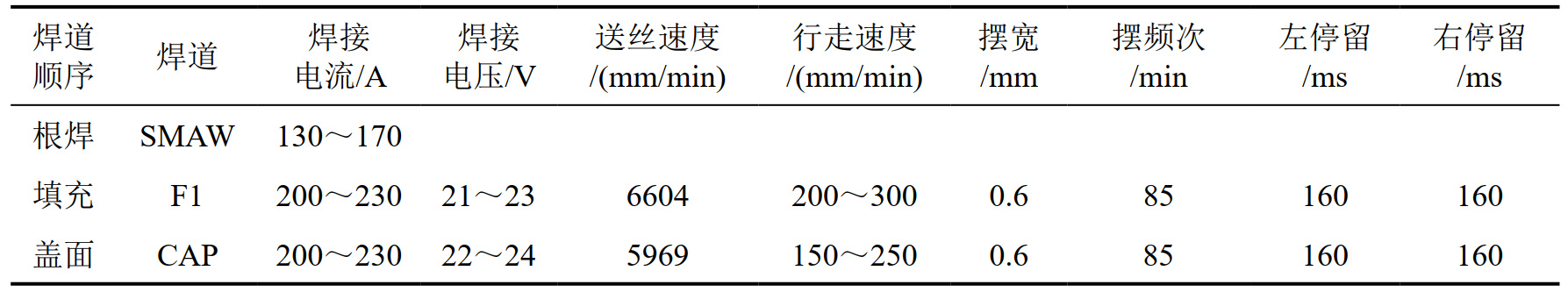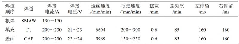 表 1 縱焊縫焊接參數(shù)表