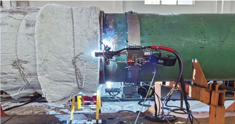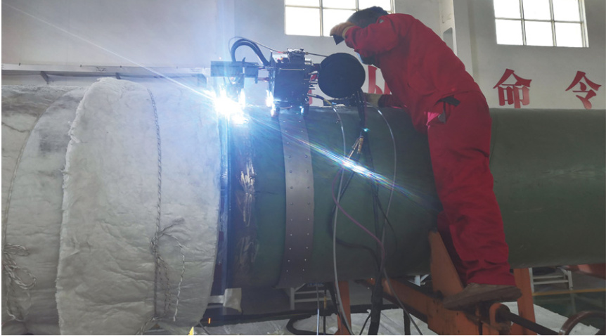 圖 4 環(huán)角焊縫焊接試驗(yàn)現(xiàn)場(chǎng)圖
