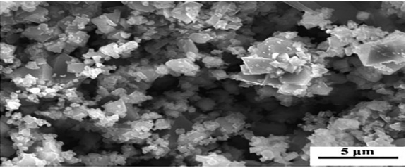 (3)微觀形貌。將腐蝕產(chǎn)物機械研磨成細(xì)粉,采用掃描電子顯微鏡SEM(JSM―6510A)觀察其微觀形貌,呈現(xiàn)塊狀和團(tuán)絮狀,如圖 2所示。