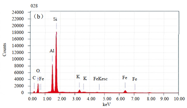 (4)成分。采用能譜分析儀EDS(JSM―6510A)檢測腐蝕產(chǎn)物成分,利用日本理學(xué)(SmartLab)旋轉(zhuǎn)陽極X射線衍射儀XRD對成分含量進(jìn)行分析。如圖 3(a)所示,XRD顯示其主要成分為Fe3O4,圖 3(b)表明其無硫化物,故微生物腐蝕的可能性較低。