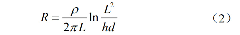 R為水平地床接地電阻,Ω;ρ為土壤電阻率,Ω·m;L為接地極長度,m;h為接地極埋深,取1.2 m;d為接地極直徑,取0.15 mm。采用四極法測得ρ,將0.83 R地床帶入式(2),可得接地極長度L。