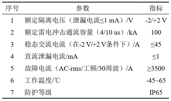 固態(tài)去耦合器起到通交隔直作用,以排除管道交流干擾電壓,其性能參數(shù)如表 2所示。