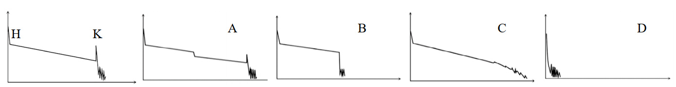 光時域反射儀接收到的反射激光信號隨光纜長度增加而逐漸減弱直至消失,檢測波形整體呈逐漸下降狀態(tài),H處為檢測盲區(qū),K處為反射峰,說明光纜末端已制成端口。如圖 2(左)所示。