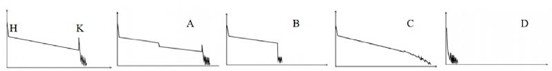 圖 2 光時域反射儀檢測正常波形(左)和四種異常典型波形
