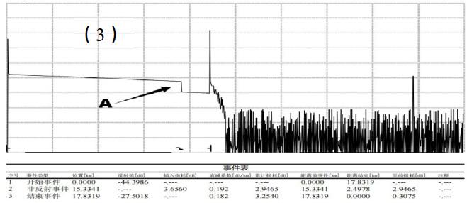 圖 3 光纜損耗點逐漸增大為中斷點波形趨勢圖