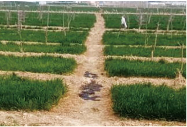 中洛線起于濮陽縣,止于洛陽煉化,干線全長282.35 km,設(shè)5座站場,管徑426 mm,設(shè)計壓力6.27 MPa,設(shè)計輸量500×104 t/a,1992年9月27日投產(chǎn),混輸中原油田原油和進(jìn)口原油。2021年3月6日下午17時,衛(wèi)輝站管道保護(hù)工巡至中洛線118#樁+700 m處,發(fā)現(xiàn)管道正上方有少量油跡(圖 1),東西向約1 m、南北向約0.3 m范圍內(nèi)有明顯的原油氣味,立即打電話向站長和處調(diào)度匯報情況。事件發(fā)生時管道為正輸流程,密閉常溫輸送,輸送油品為混合原油。