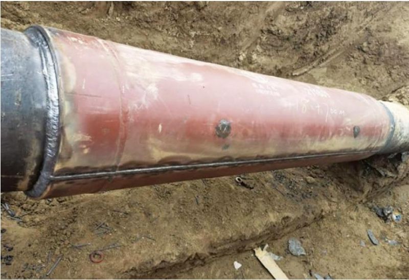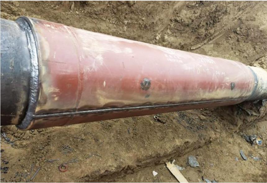 3月14日17時,使用定制的2 m異型加強套筒進(jìn)行永久修復(fù),完成套筒焊接作業(yè)及管道防腐,現(xiàn)場回填。