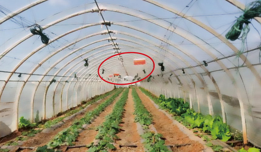圖 2 大棚內(nèi)懸掛管道標(biāo)識