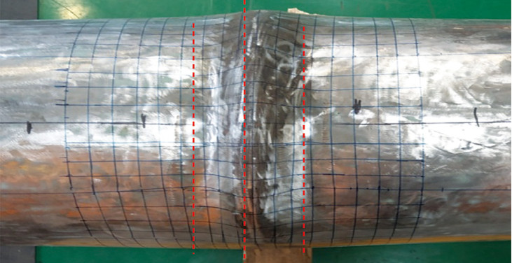 為進(jìn)一步明確缺陷成因,結(jié)合周邊自然環(huán)境變化,從宏觀檢測、無損檢測、理化性能和綜合分析等方面,對缺陷管體進(jìn)行檢測與分析。