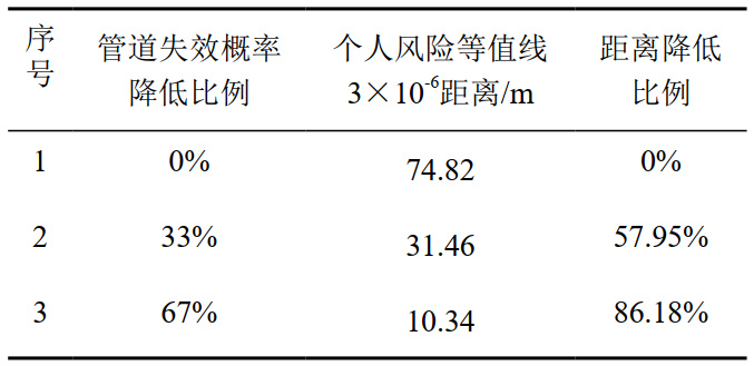以個人風(fēng)險等值線3×10-6這組數(shù)據(jù)為例進(jìn)行分析,如表 2。