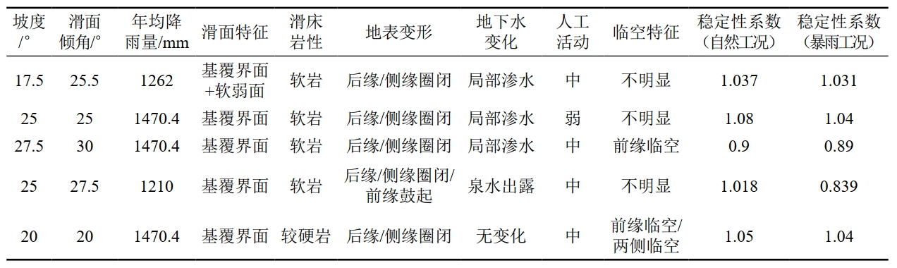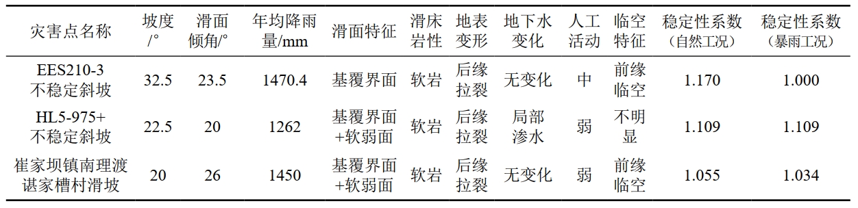 表 4 典型地質(zhì)災(zāi)害點(diǎn)參數(shù)
