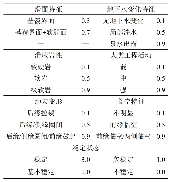 滑坡類型多樣,影響因素眾多,是一個(gè)復(fù)雜的工程問題,難以進(jìn)行工程定量計(jì)算。此外,各個(gè)工程所獲指標(biāo)不統(tǒng)一,部分指標(biāo)為定量,部分指標(biāo)為定性,這使得應(yīng)用神經(jīng)網(wǎng)絡(luò)進(jìn)行滑坡分析與預(yù)測(cè)時(shí),面臨首個(gè)難題是滑坡數(shù)據(jù)的提取與樣本庫的建立。